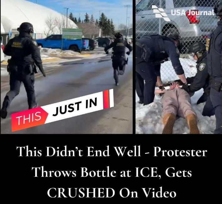 NewsNation reporter Ali Bradley shared video of an individual who, she said, hurled a water bottle at federal agents standing outside a federal building. The person quickly discovered that attacking law enforcement was a poor life decision, though not on the same level as Good, who lost her life after trying to mow down an ICE agent with her vehicle.