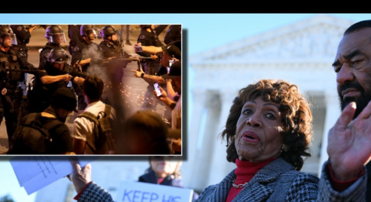 “What I see here at the detention center are people exercising their constitutional rights,” Waters said while standing in front of officers wearing riot gear, Fox News reported. “And, of course, they’re now trying to tear gas everybody. It’s in the air, but people are not moving.”