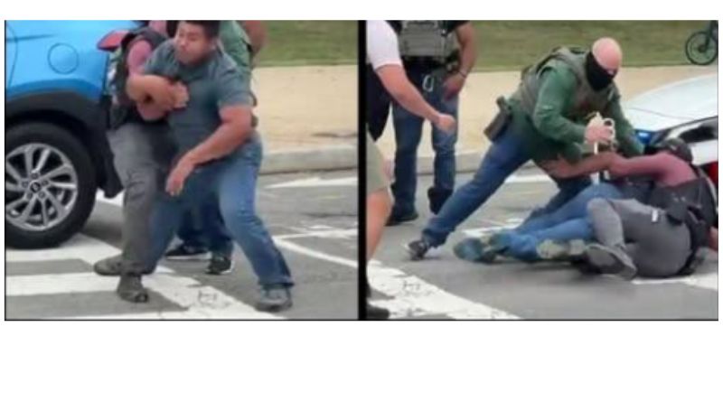 Video recorded by NBC Washington reporter Aimee Cho shows federal agents, joined by at least one officer from the D.C. Metropolitan Police Department, pulling over a blue SUV driven by a Spanish-speaking man. After stepping out of the vehicle, the man suddenly tried to run, prompting agents to chase him down and tackle him to the ground.