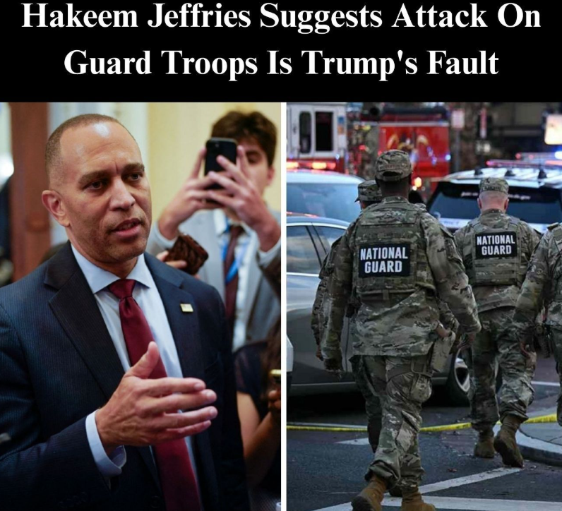 House Minority Leader Hakeem Jeffries became the latest Democrat to suggest that the horrific attack against two National Guard troops the day before Thanksgiving is somehow President Donald Trump’s fault.